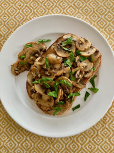 5. Spoon mushrooms over toasted bread. Top with chopped parsley or your favorite drizzle.