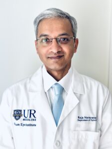 Raja Narayanan, ophthalmologist and retina and vitreous surgeon at UR Medicine Flaum Eye Institute, explained that wet AMD (W-AMD) refers to fluid accumulation and swelling at the back of the eye and sometimes bleeding.
