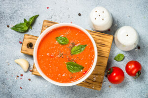 5. Taste and, if necessary, add a little more sugar (to balance out the acidity of the tomatoes). Add more pepper and salt, if needed. Stir in basil, if using, and serve.