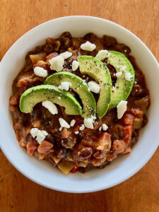 Low in fat and calories, this chili delivers several powerhouse nutrients: protein, folate, potassium, and plenty of health-promoting antioxidants. Fiber-rich black beans also help to reduce cholesterol and support good gut health.
